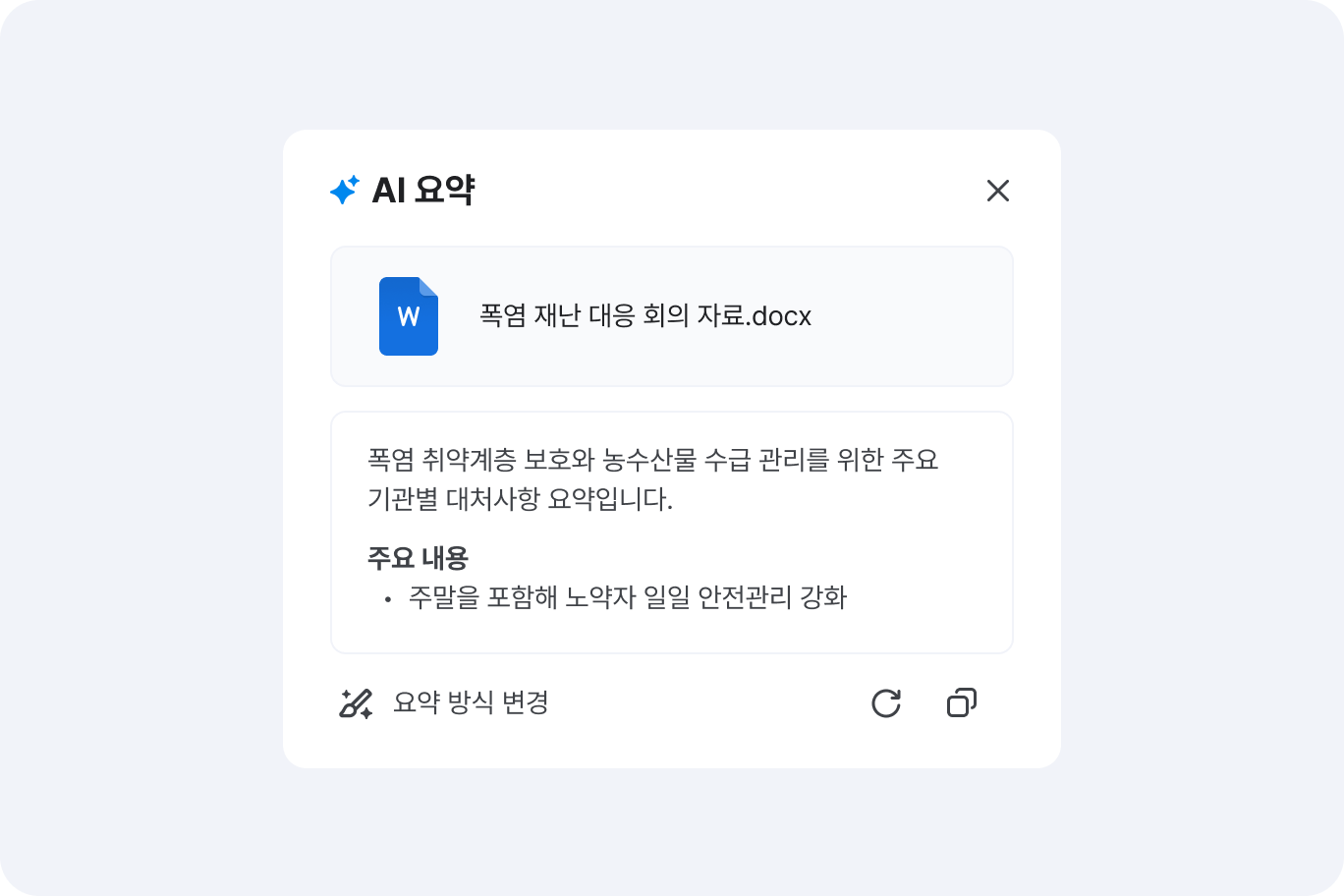 필요한 자료를 AI가 신속하게 찾아줄 뿐만 아니라, 요약본까지 제공해 업무 효율성을 더욱 높여줍니다.